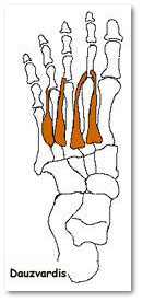 | ACTION Abduct 2nd , 3rd and 4th toes from axis of 2nd toe. Assist lumbricals in extending interphalangeal joints while flexing metatarsal phalangeal joints |