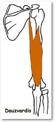 | ACTION Extends elbow. Long head stabilizes shoulder joint. medial head retracts capsule of elbow joint on extension |