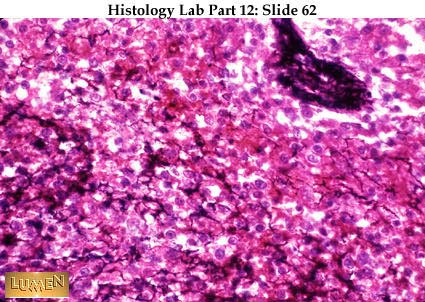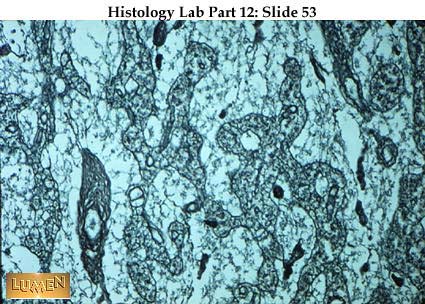 This silvered slide of red pulp is a reminder that the supportive stroma of the spleen, like that of lymph node and bone marrow, is composed of reticular cells and reticular fibers. This network extends into white pulp as well.