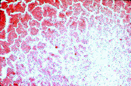 - Chest x-ray shows diffuse bilateral airspace disease.