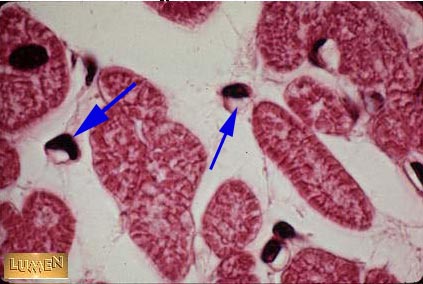 Q2 Name the structures that are located in the connective tissue (arrows).