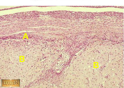 This is the corpus luteum. What are the two structures indicated and what do they secrete?