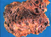 Fig. li.11-3-1 Adult polycystic disease Both kidneys are transformed into cystic masses weighing 600grams each. The patient was a 59 year old female. The cysts are large and had caused chronic renal failure. The patient was kept alive for over two years with renal dialysis. The liver was moderately involved by the cystic disease.