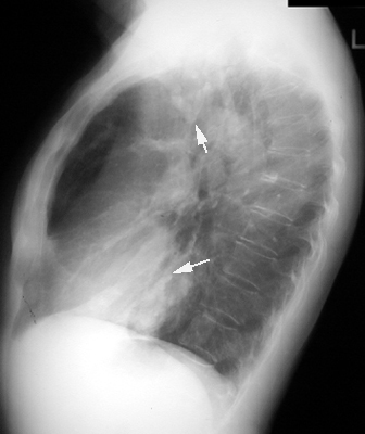 "Gloved finger" appearance. Branching density. Inspissated mucus, distends bronchi giving such an appearance.
